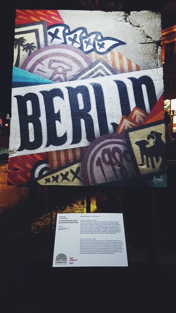 Изложбата “Art Liberty, от Берлинската стена до уличното изкуство”, включваща единствената пътуваща колекция с произведения върху фрагменти от Берлинската стена е и част от програмата на Пловдив – Европейска столица на културата 2019. Тя бе позиционирана в центъра на Пловдив около Римския стадион.