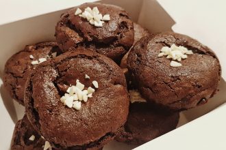 Необходими продукти:1 бр. яйце125 гр. масло1/2 ч. ч. кисело мляко1 ч. ч. брашно1/2 ч. ч. захар5-6 с. л. какао1 пакетче бакпулвер1 ч. л. сода100 гр. натурален шоколадшоколадов кувертюр Начин на приготвяне:Яйцето и захарта се разбиват до побеляване. Добавете маслото и продължете да разбърквате. Към киселото мляко добете содата и смесете с течните съставки. В друга […]